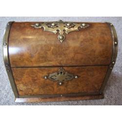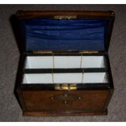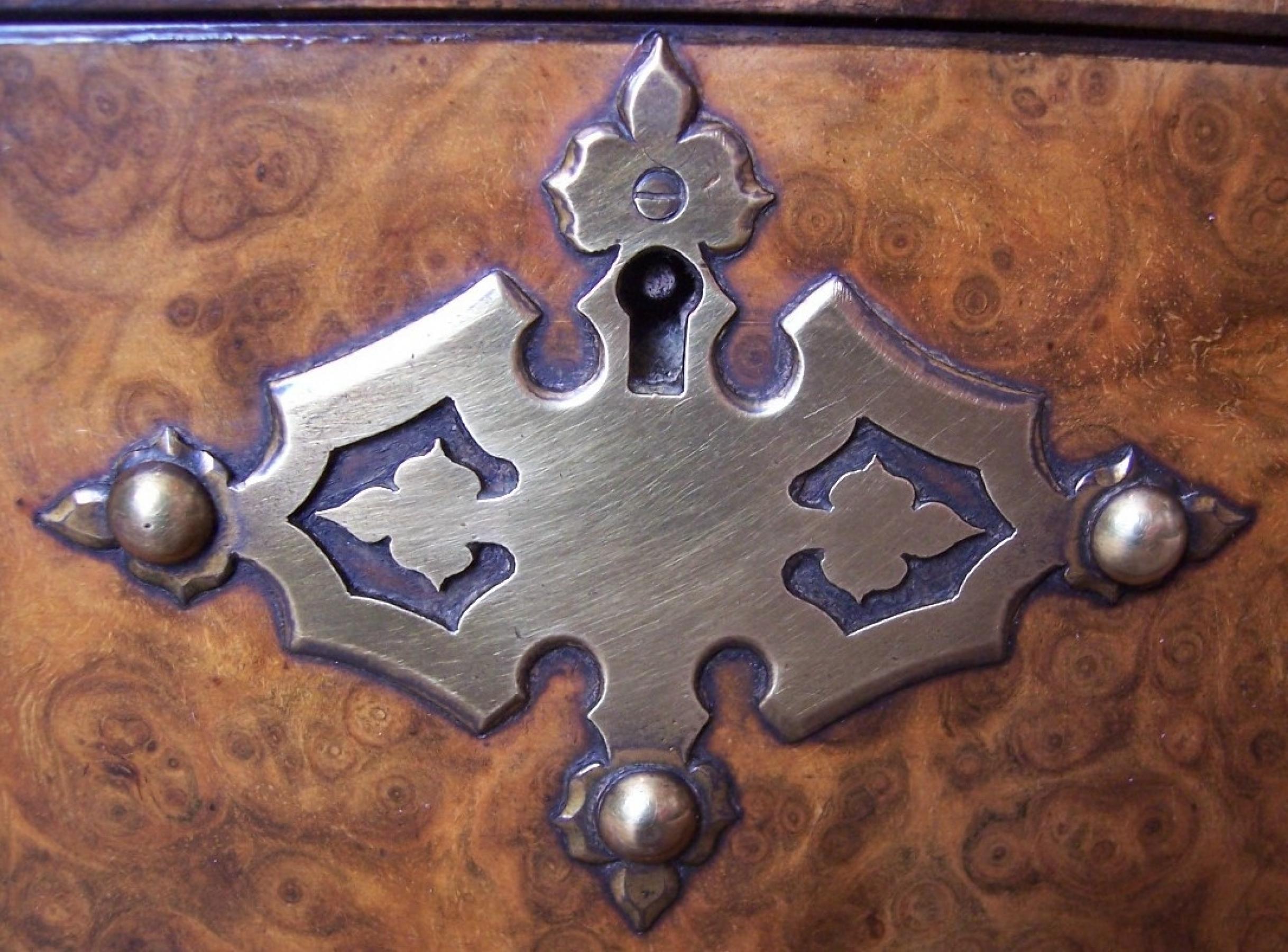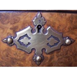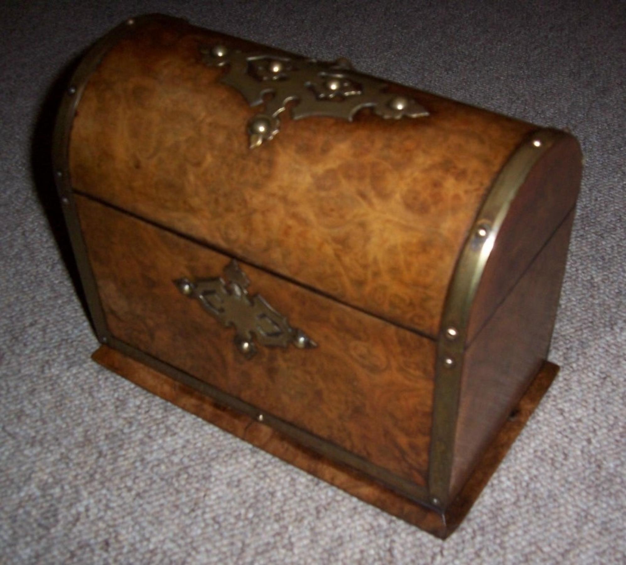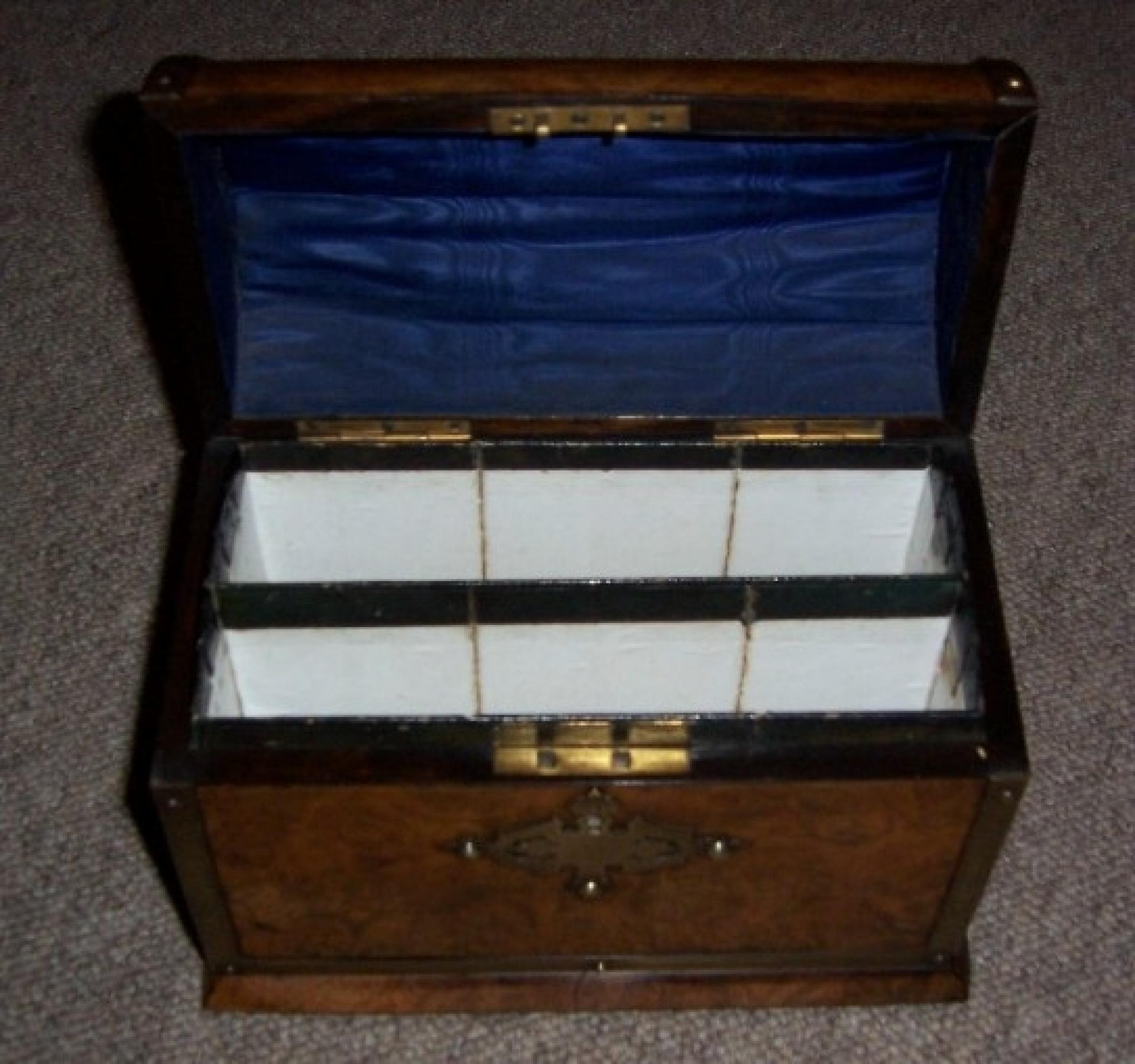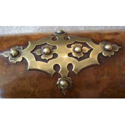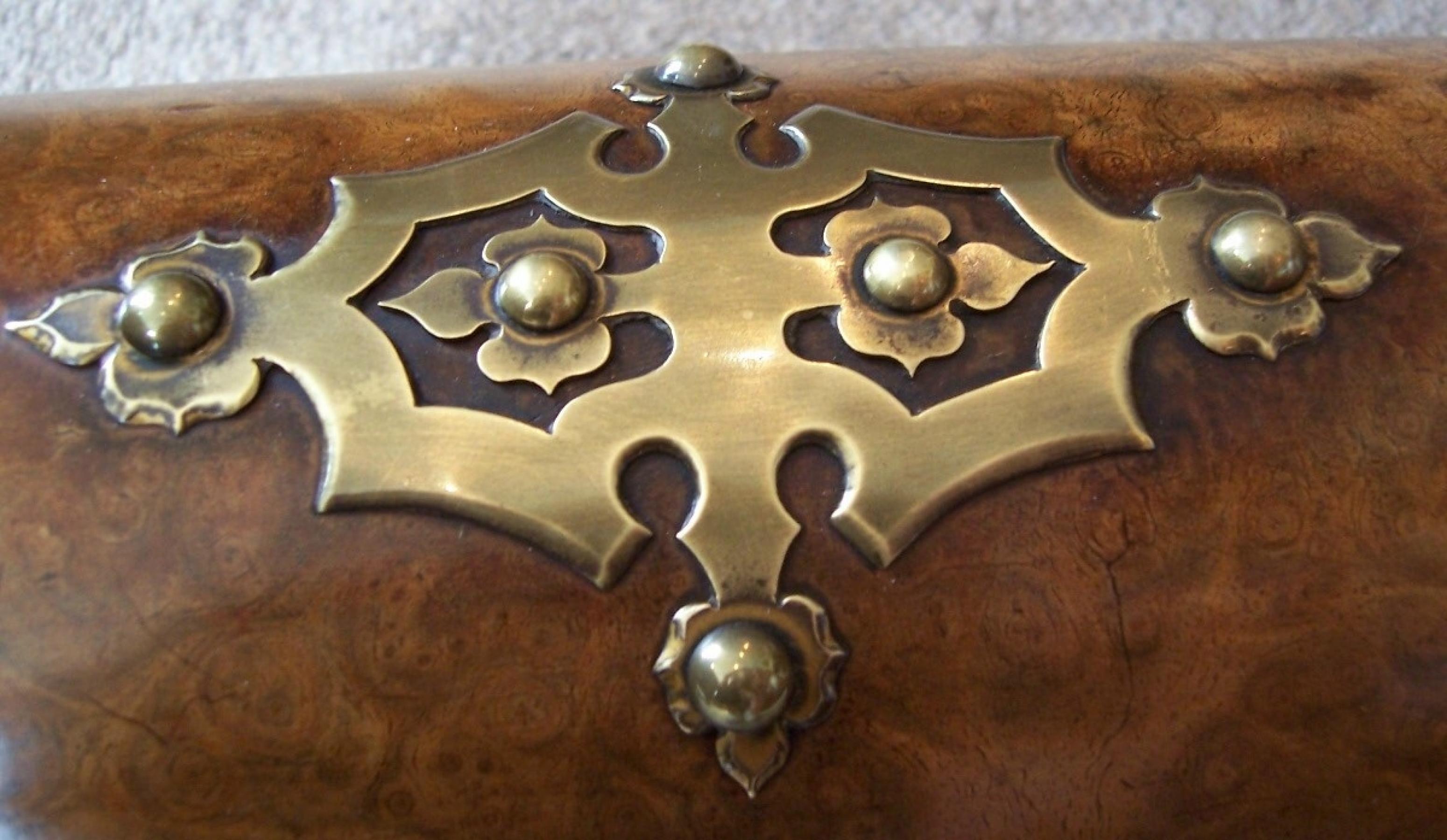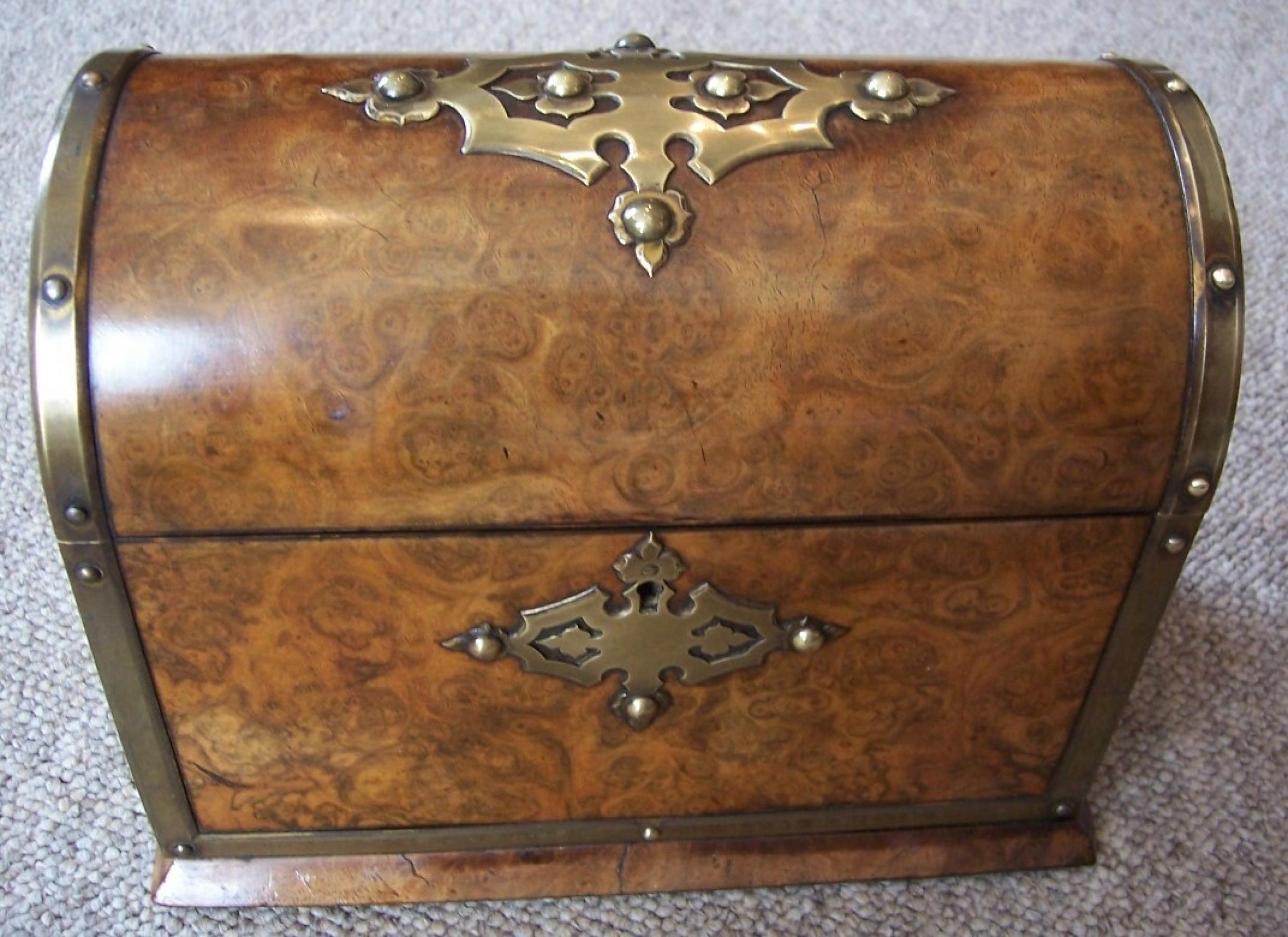 A Victorian Stationery Box in Burr Walnut with pierced brass mounts and Dome top