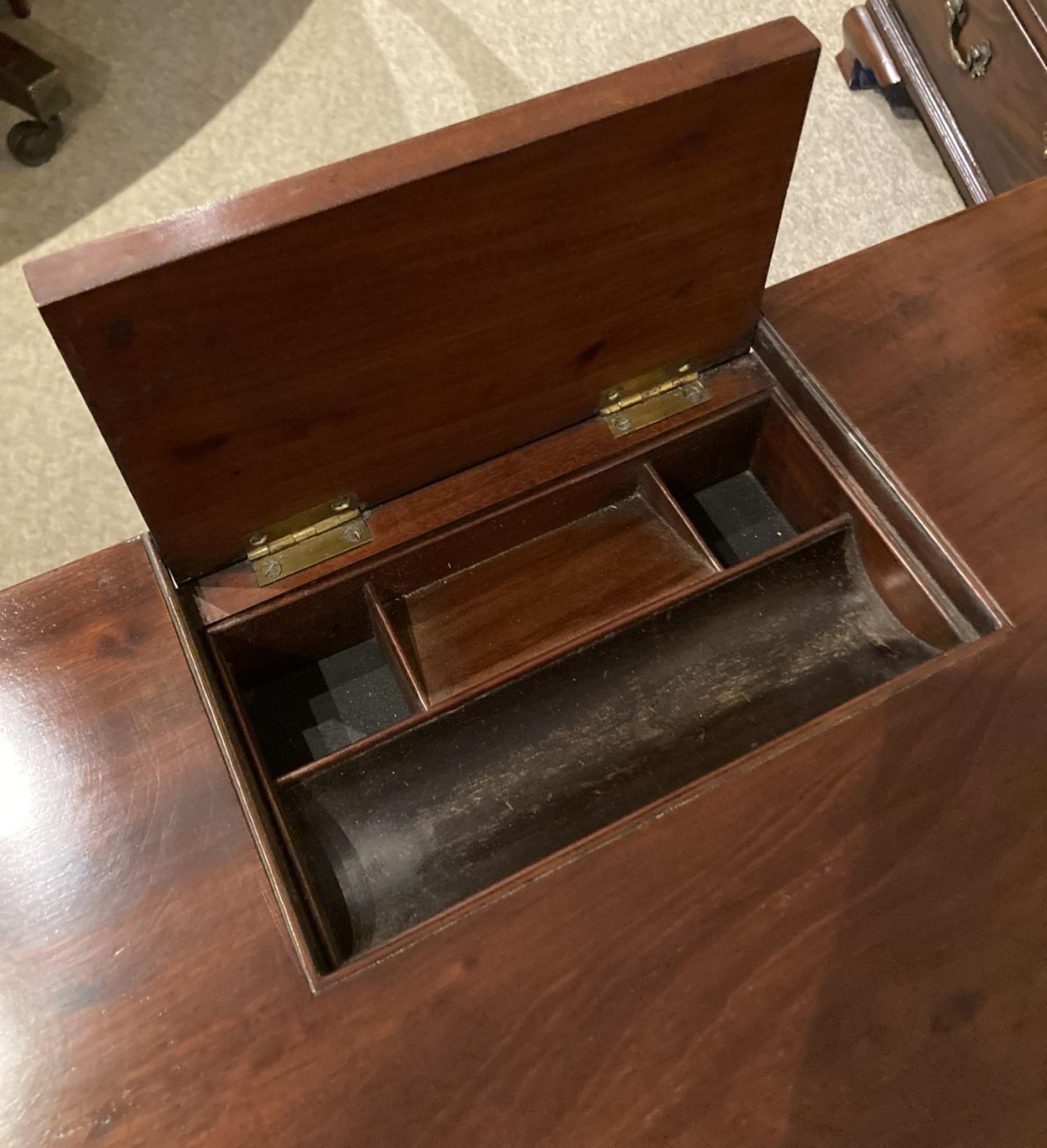 Regency Mahogany Chamber Table attributed to Gillow of Lancaster (not stamped) with pen tray flap, raised on reeded legs - similar supplied to Tatton Park. Circa 1815