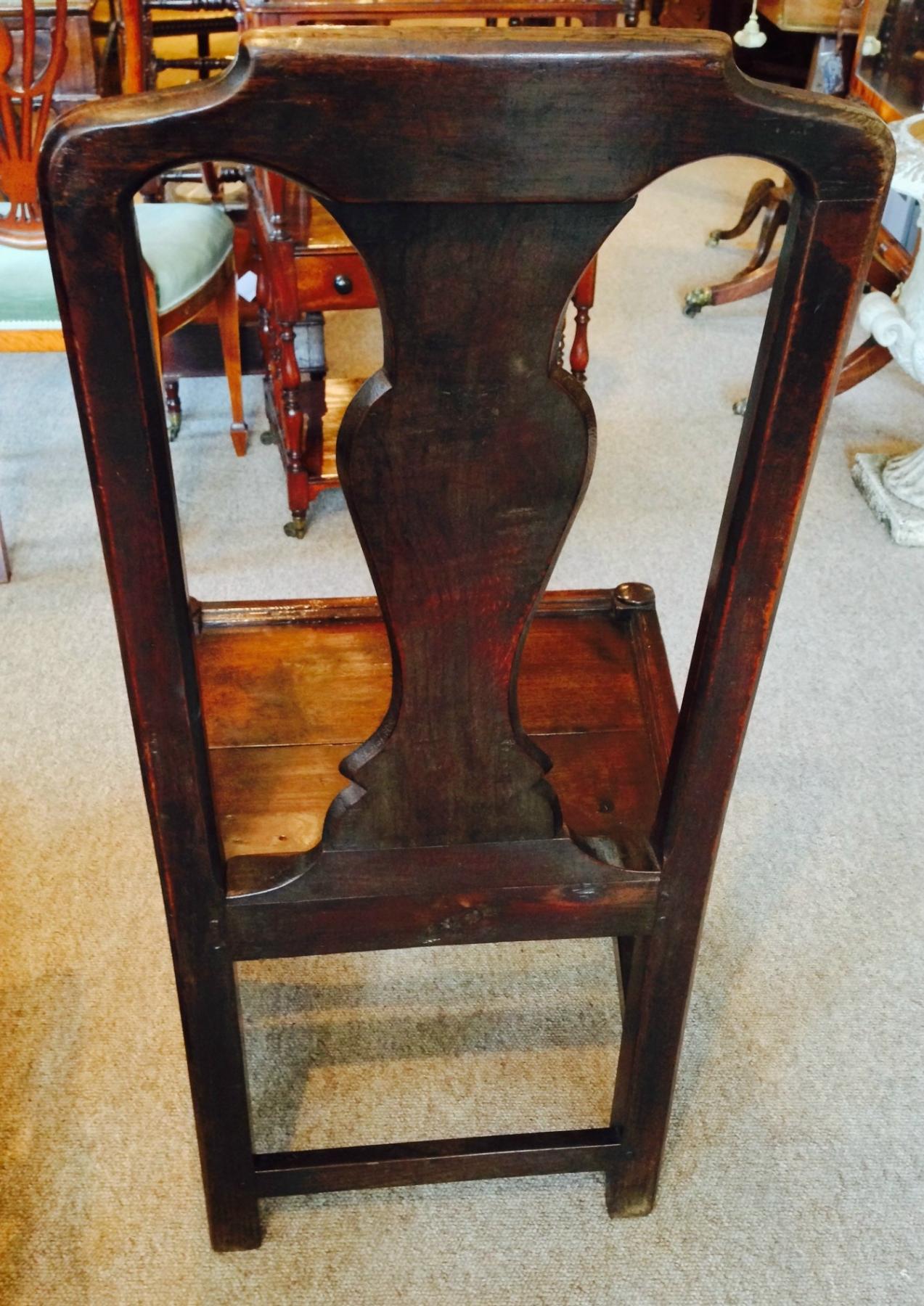 A Fine Pair of Queen Anne Oak Side Chairs of superb colour and condition, in transitional style, combining the turned underframe with stretchers of the 17th Century with the newly fashionable baluster shaped splat, the panelled seat dished for a squab cushion, and all with a rich waxed patination and lovely original condition