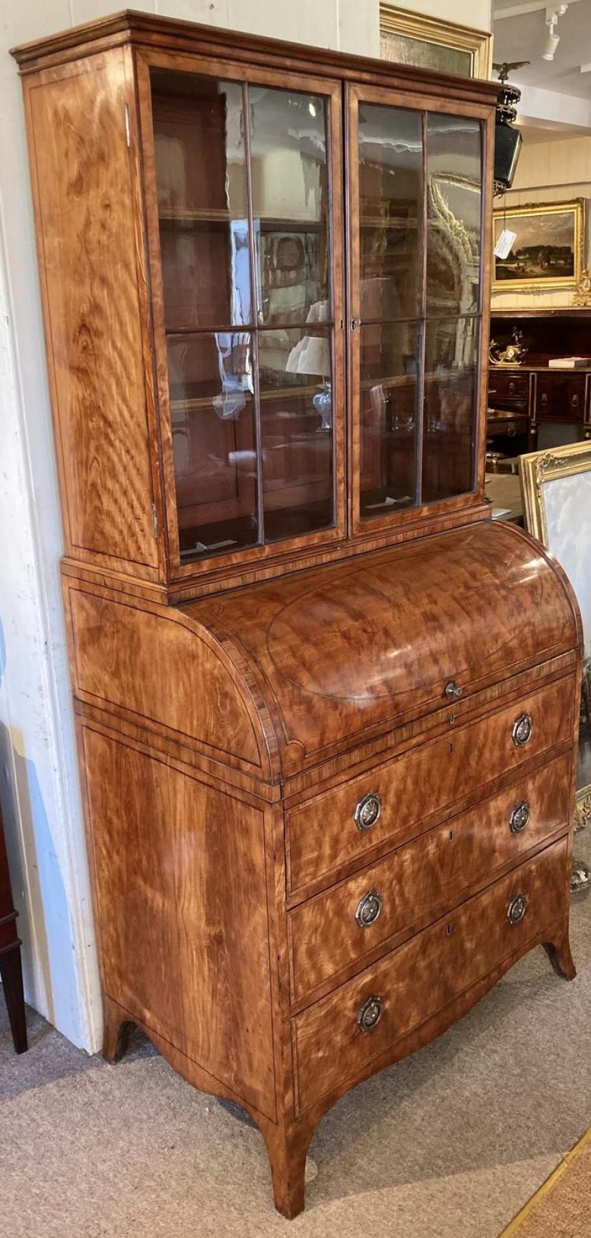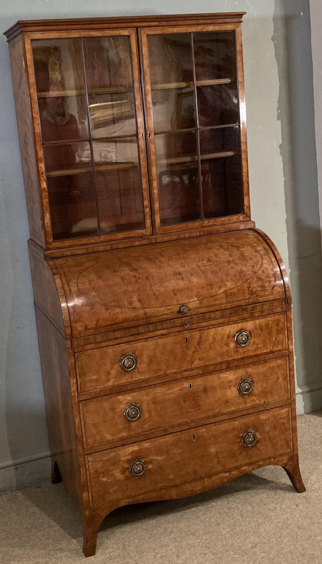 Geo III Satinwood Cylinder Secretaire Cabinet