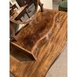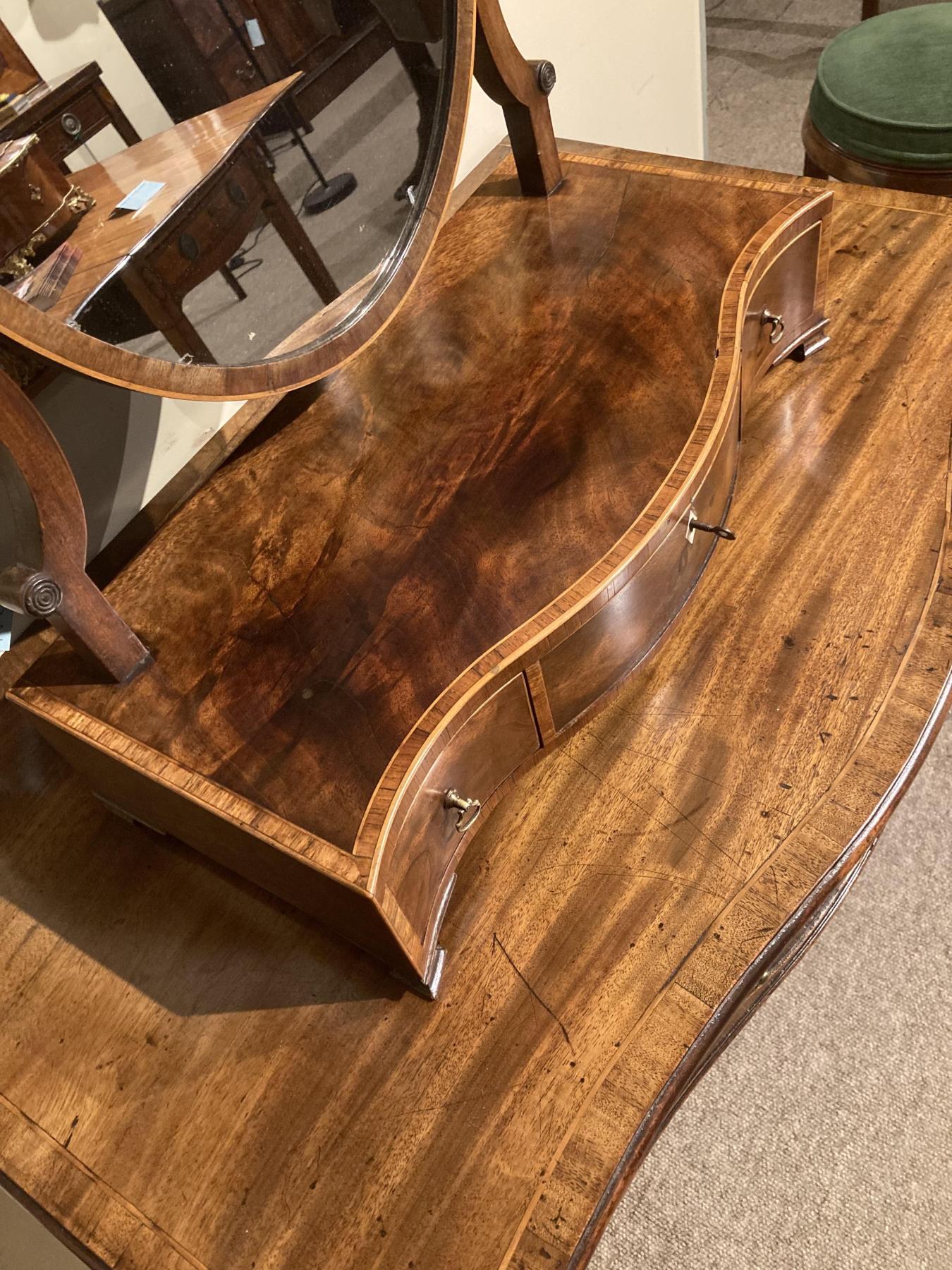Geo III Mahogany & Tulipwood crossbanded Serpentine Dressing Mirror with oval plate, good original surface circa 1790