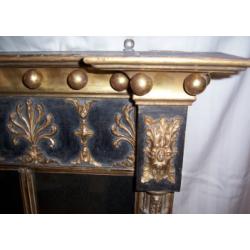 A Fine & Elegant Regency Giltwood & Gesso Triple plate Overmantel Mirror with the original silvered plates, the cavetto cornice above a bronzed frieze applied with anthemion and leaf mounts, the sides with Gothic cluster columns and leaf capitals