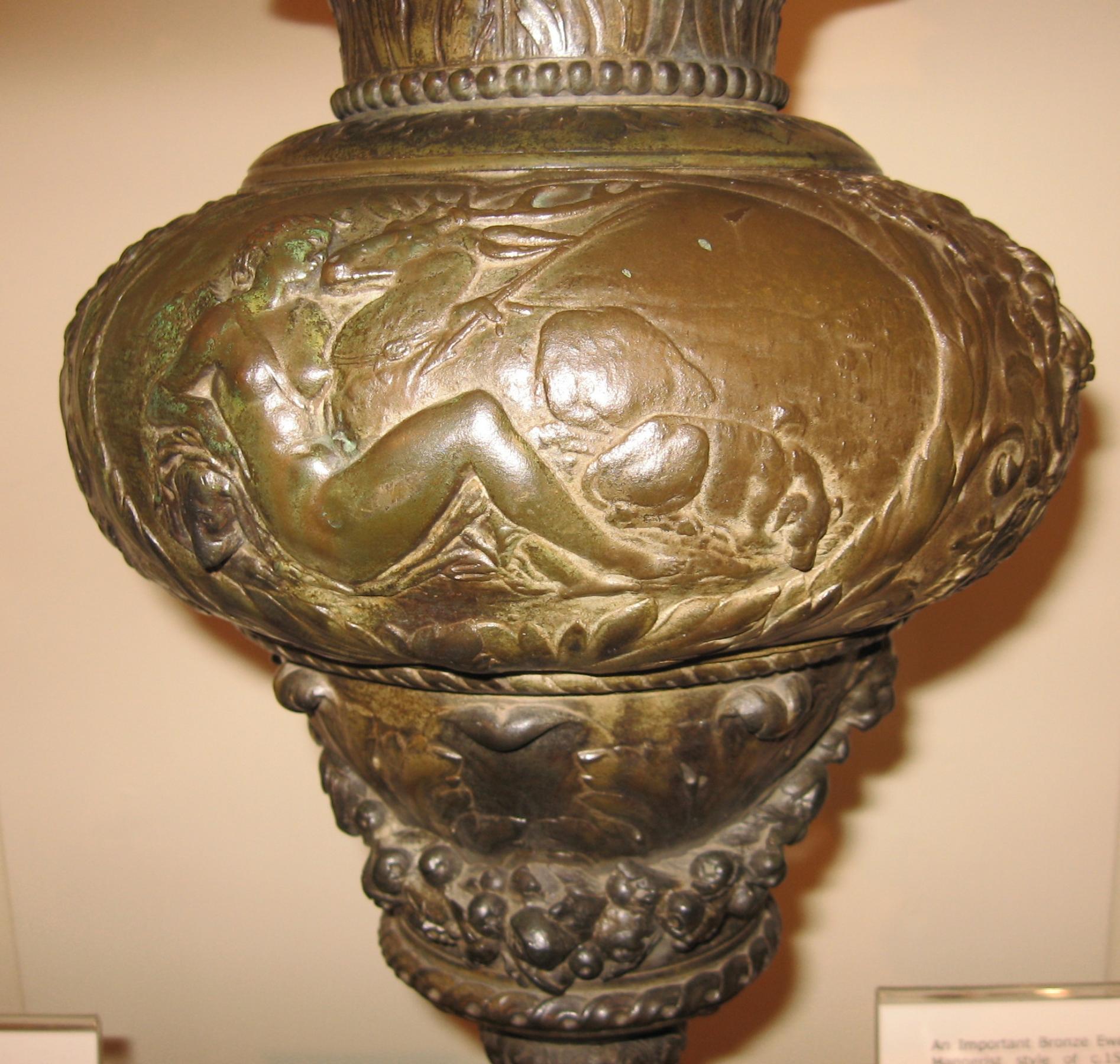 An Important Bronze Ewer in the Mannerist style of c.1580-1620 depicting a Triton summoning the water, with scenes of goddesses Venus & Diana. This piece, with superb patination, dates to circa 1850, in the Classic Renaissance Revival period of the mid 19th Century.